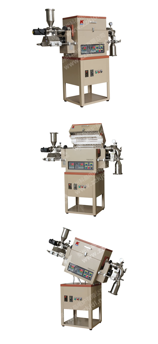 真空氣氛旋轉(zhuǎn)式連續(xù)送料粉末燒結(jié)爐XZGL-1000X一款雙溫區(qū)真空氣氛旋轉(zhuǎn)管式爐,它有自動(dòng)收料罐及送料器。自動(dòng)可定份額將粉料送入到爐管中,該過程可在氣氛保護(hù)環(huán)境下進(jìn)行,實(shí)現(xiàn)用連續(xù)CVD方法對(duì)粉體材料進(jìn)行包覆和修飾。此款管式爐設(shè)計(jì)主要是在鋰離子電池的陰極材料(如LiFePO3, LiMnNiO3)上包覆導(dǎo)電層,同時(shí)也可用CVD方式制備 Si/C 陽極材料。 收料罐可在氣氛保護(hù)環(huán)境下對(duì)處理好的粉料進(jìn)行收集。